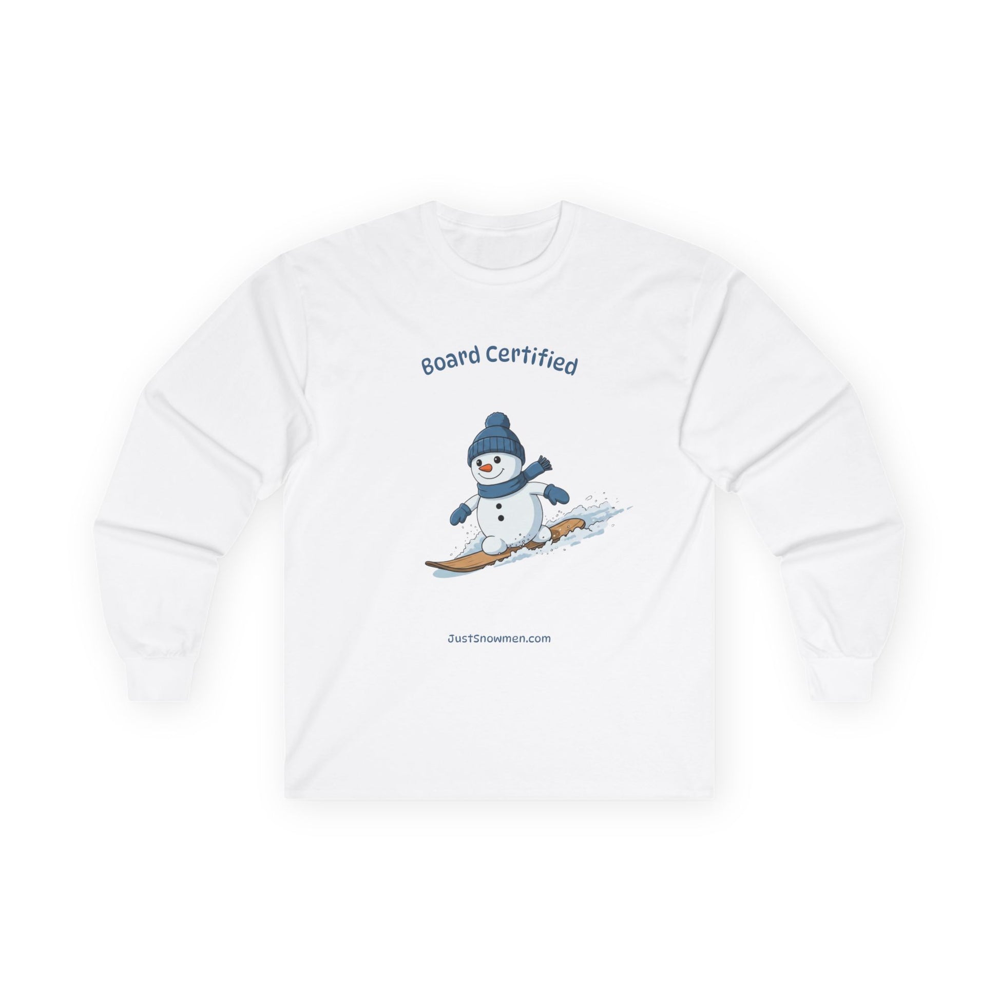 "Board Certified" Snowman Snowboarding Long Sleeve | 100% Cotton Sports Shirt