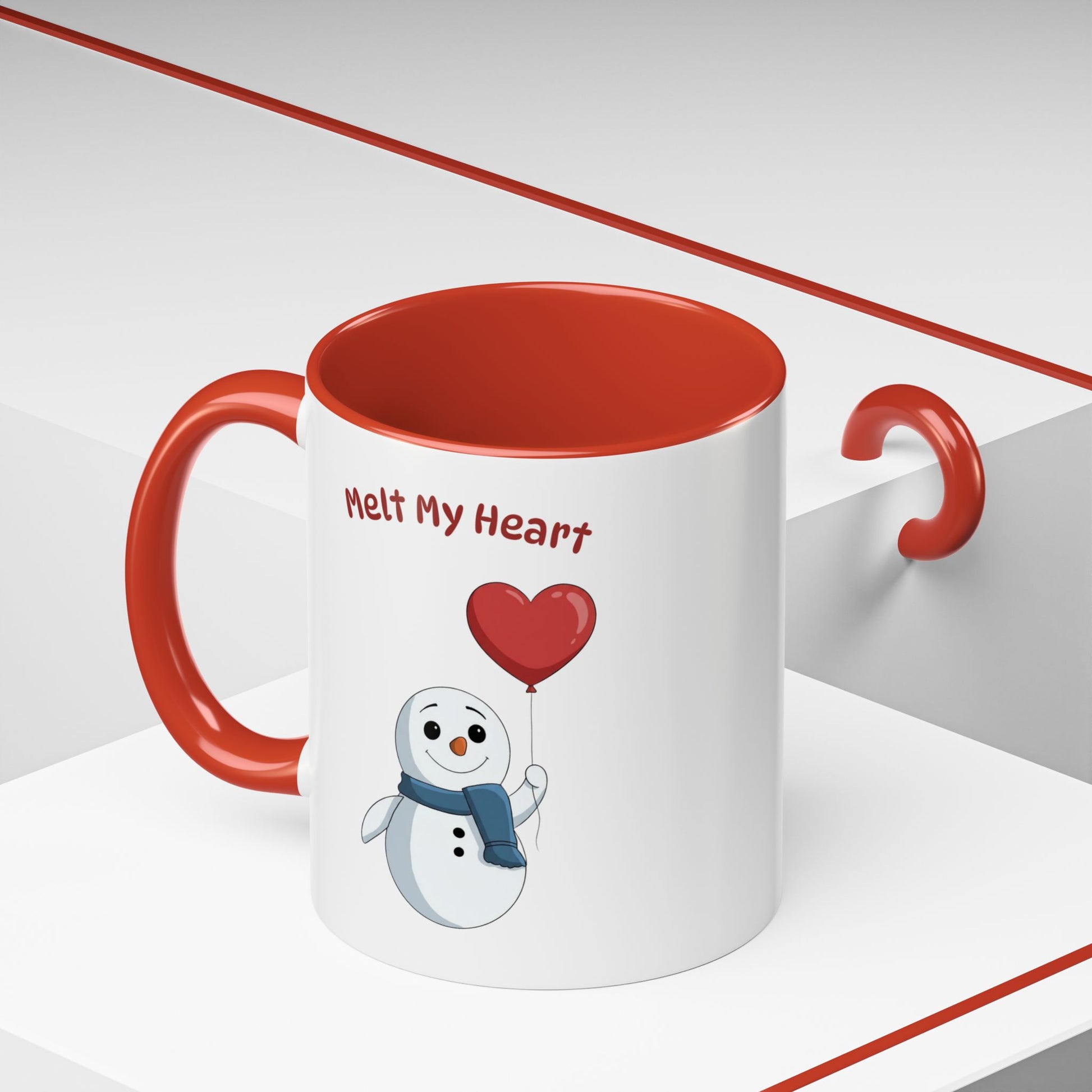 "Melt My Heart" Valentine's Snowman Mug | Ceramic Coffee Cup with Color Accent